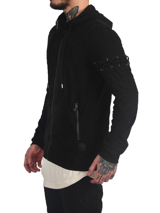 Hoodie lace up effet daim Homme
