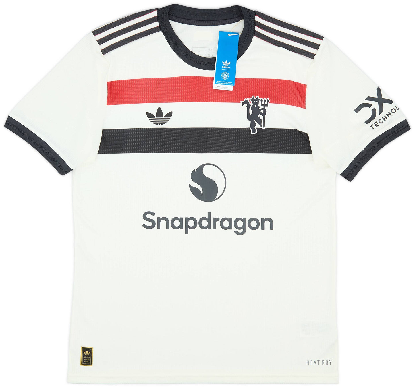 Le troisième maillot de Manchester United 2024-25 rend hommage à la culture des fans du club dans le monde entier. Un drapeau tricolore rouge, blanc et noir qui unit les fans est arboré sur la poitrine, l'écusson traditionnel étant remplacé par l'emblématique diable du club, assis à côté du trèfle adidas. Le même drapeau est représenté à l'arrière du cou en guise de signature, le kit étant complété par un simple col ras du cou.