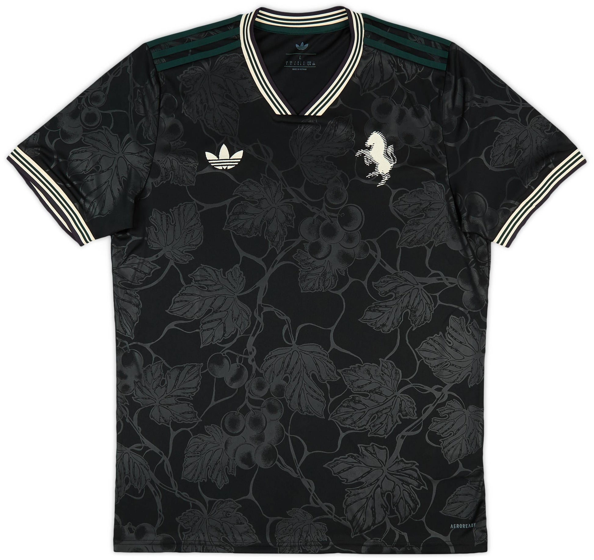 Alliant tradition et innovation, adidas et la Juventus présentent l'élégant troisième maillot pour la saison 2025/26. Ce maillot perpétue le thème saisonnier du club, "l'excellence italienne", en s'inspirant profondément des vignobles du Piémont, pilier culturel de la région. Son design s'inspire du riche patrimoine viticole italien. Le maillot arbore un coloris unique de noir, bordeaux et vert foncé, sublimé par un motif subtil et sophistiqué inspiré des raisins qui parcourt le tissu. Résultat : un maillot sophistiqué, à la fois accrocheur sur le terrain et élégant dans la rue. Pour la deuxième saison consécutive, le maillot arbore fièrement l'emblématique logo Trèfle adidas Originals, hommage à son héritage culturel footballistique.